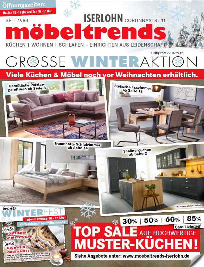 Möbeltrends Lallensack Iserlohn Einrichtungshaus für Möbel und Küchen in Iserlohn. Infomoebeltrends-iserlohnde Öffnungszeiten Mo-Fr 10-19 Uhr Sa 10-18 Uhr Ansprechpartner Kundendienst Telefon. Musterküchen und Ausstellungsküchen zum Abverkauf.